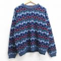 L★古着 長袖 セーター メンズ 90年代 90s アクリル クルーネック 紺他
