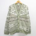【商品名】 L★古着 長袖 ニット カーディガン メンズ 90年代 90s アクリル 緑系他