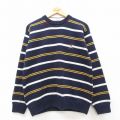 L★古着 長袖 セーター メンズ 90年代 90s マルチカラー クルーネック 紺他