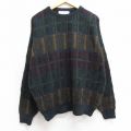 L★古着 長袖 セーター メンズ 90年代 90s アクリル クルーネック 紺他 チェック