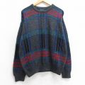XL★古着 長袖 セーター メンズ 90年代 90s アクリル クルーネック エンジ他