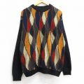 XL★古着 長袖 セーター メンズ 90年代 90s ラグ柄 大きいサイズ アクリル クルーネック 黒他