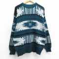 XL★古着 シアーズ 長袖 セーター メンズ 90年代 90s ネイティブ柄 ラグ柄 アクリル クルーネック 緑他