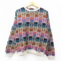 L★古着 長袖 セーター メンズ 90年代 90s マルチカラー クルーネック 紺他