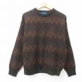 L★古着 長袖 セーター メンズ 00年代 00s 大きいサイズ アクリル クルーネック 茶他