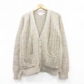 【商品名】 L★古着 長袖 ケーブル ニット カーディガン メンズ アクリル ベージュ系