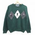 【商品名】 L★古着 長袖 セーター メンズ 90年代 90s ゴルフ 刺繍 アーガイル クルーネック 緑他