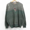 【商品名】 L★古着 長袖 セーター メンズ 90年代 90s ゴルフ 刺繍 クルーネック USA製 濃緑他