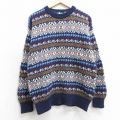 【商品名】 L★古着 長袖 セーター メンズ 90年代 90s フェアアイル コットン クルーネック 紺他