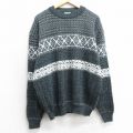 XL★古着 長袖 セーター メンズ 90年代 90s バーズアイ 大きいサイズ アクリル クルーネック 薄グレー他