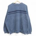 【商品名】 L★古着 長袖 セーター メンズ 90年代 90s 手織り クルーネック 紺