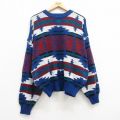 【商品名】 XL★古着 長袖 セーター メンズ ネイティブ柄 ラグ柄 大きいサイズ アクリル クルーネック 紺【spe】