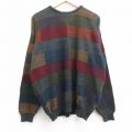 XL★古着 長袖 セーター メンズ 90年代 90s アクリル クルーネック 緑他