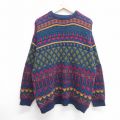 XL★古着 長袖 セーター メンズ 90年代 90s 大きいサイズ アクリル クルーネック 紺他