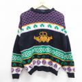 【商品名】 XL★古着 ブラーニー 長袖 セーター メンズ 80年代 80s ハート クローバー アクリル クルーネック アイルランド製 濃紺他【spe】
