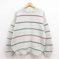 XL★古着 長袖 セーター メンズ 90年代 90s 大きいサイズ クルーネック 茶他 ボーダー