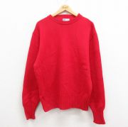 L★古着 長袖 セーター メンズ 80年代 80s 無地 アクリル クルーネック 赤