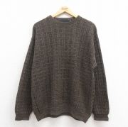 XL★古着 長袖 セーター メンズ 90年代 90s 手織り クルーネック USA製 茶他