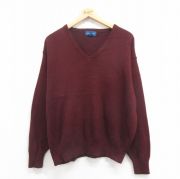 XL★古着 ロンドンフォグ 長袖 セーター メンズ 90年代 90s 無地 アクリル Vネック USA製 赤他