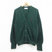 M★古着 IZOD 長袖 ニット カーディガン メンズ 90年代 90s ワンポイントロゴ アクリル USA製 緑