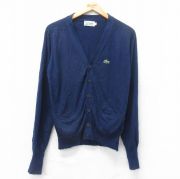 M★古着 ラコステ LACOSTE IZOD 長袖 ブランド ニット カーディガン メンズ 80年代 80s ワンポイントロゴ アクリル 紺
