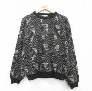 XL★古着 長袖 セーター メンズ 90年代 90s アクリル クルーネック 黒他