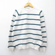 L★古着 エルエルビーン 長袖 セーター メンズ 80年代 80s ラグラン コットン クルーネック USA製 白他 ボーダー