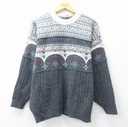 L★古着 長袖 セーター メンズ 80年代 80s アクリル クルーネック 濃グレー他