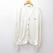 L★古着 ラコステ LACOSTE IZOD 長袖 ニット カーディガン メンズ 80年代 80s ワンポイントロゴ アクリル 白