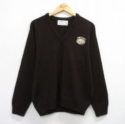 L★古着 長袖 セーター メンズ 80年代 80s BECAHI アクリル Vネック 濃茶系