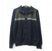 L★古着 長袖 フルジップ ニット カーディガン メンズ 00年代 00s アクリル 茶他 内側サーマル