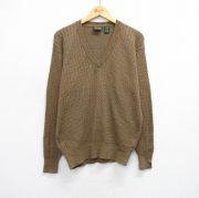 XL★古着 長袖 ケーブル セーター メンズ コットン Vネック 茶