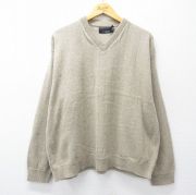 XL★古着 長袖 セーター メンズ 大きいサイズ Vネック ベージュ