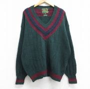 XL★古着 長袖 チルデン セーター メンズ 00年代 00s 大きいサイズ Vネック 緑