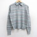 S★古着 バンヒューセン 長袖 セーター メンズ 90年代 90s 襟付き アクリル グレー他 ボーダー 25oct20 中古 ニット トップス