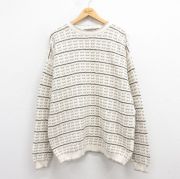 XL★古着 長袖 セーター メンズ 90年代 90s 大きいサイズ コットン クルーネック USA製 白他