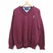 【商品名】 XL★古着 長袖 セーター メンズ 90年代 90s ゴルフ コットン クルーネック USA製 エンジ【spe】