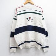 XL★古着 IZOD 長袖 セーター メンズ 90年代 90s ビッグロゴ ゴルフ 刺繍 大きいサイズ コットン クルーネック 白