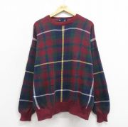 XL★古着 長袖 セーター メンズ 90年代 90s コットン クルーネック エンジ他 チェック