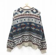 XL★古着 長袖 セーター メンズ 90年代 90s フェアアイル 大きいサイズ アクリル クルーネック USA製 ベージュ他