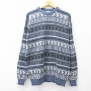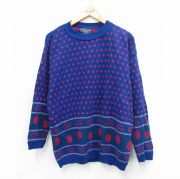 L★古着 長袖 セーター メンズ 90年代 90s 花アクリル クルーネック USA製 青他