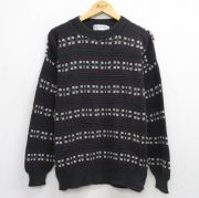L★古着 長袖 セーター メンズ 90年代 90s 総柄 クルーネック 黒他