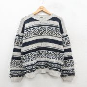 L★古着 セントジョンズベイ 長袖 セーター メンズ 90年代 90s ネイティブ柄 ラグ柄 コットン クルーネック USA製 薄ベージュ系他