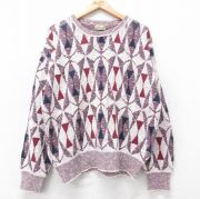 L★古着 長袖 セーター メンズ 90年代 90s クルーネック 薄紫系他