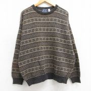 L★古着 長袖 セーター メンズ 90年代 90s 総柄 クルーネック USA製 茶他