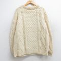 XL★古着 長袖 アラン フィッシャーマン ケーブル セーター メンズ 90年代 90s 大きいサイズ ウール クルーネック アイルランド製 生成り