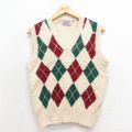 S★古着 ニット ベスト メンズ 80年代 80s アーガイル ウール Vネック 生成り 25dec01