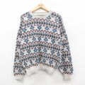 L★古着 ジャンセン 長袖 セーター メンズ 90年代 90s 総柄 クルーネック USA製 薄グレー系他【spe】 25dec04