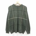 L★古着 HAGGAR 長袖 ケーブル セーター メンズ コットン クルーネック 濃緑 25dec05