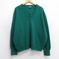 XL★古着 ランズエンド 長袖 セーター メンズ 00年代 00s 無地 ラグラン ラムウール Vネック 緑 25dec11